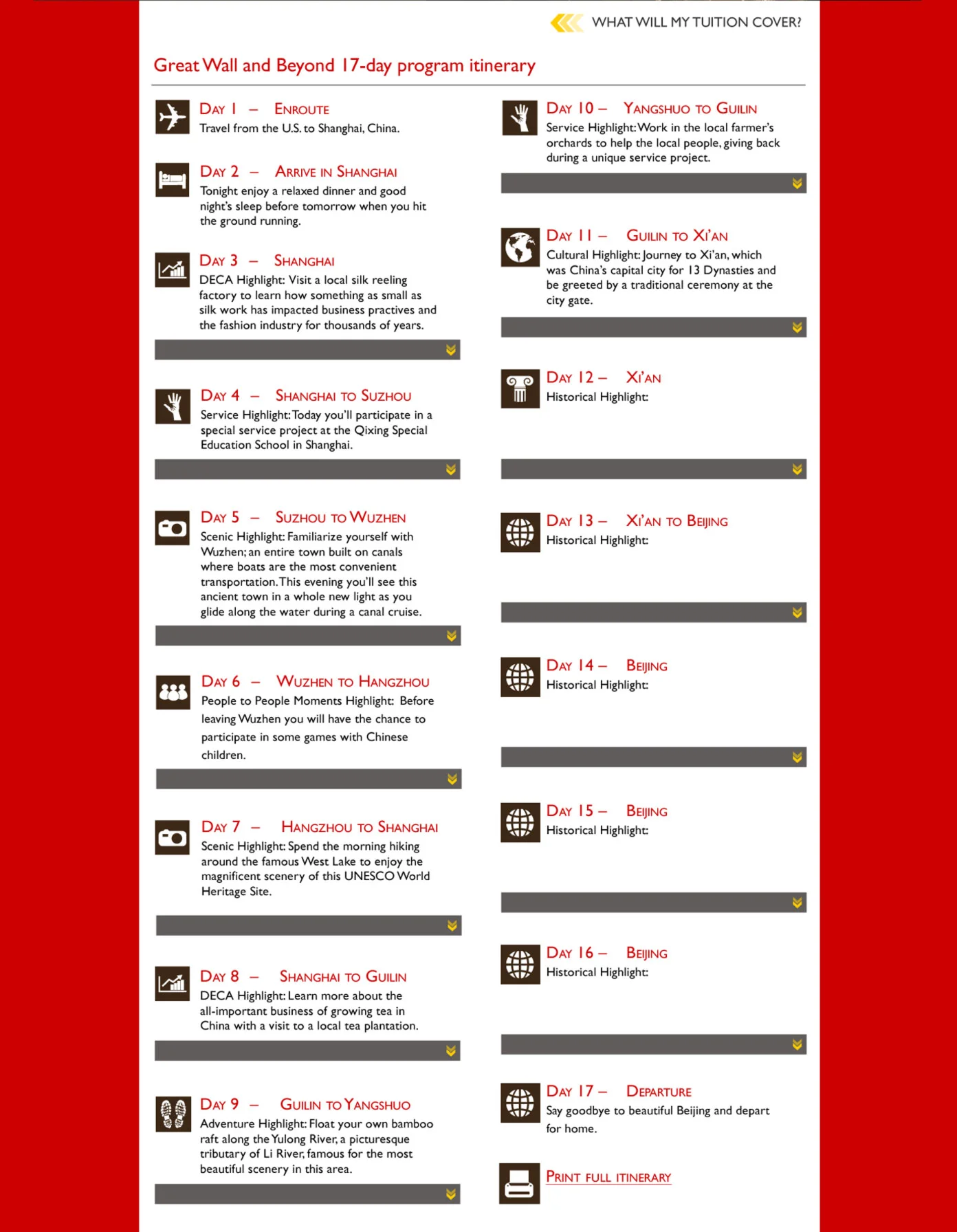 full itinerary close-up